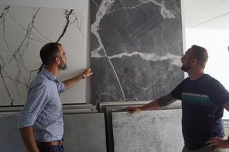 Marco Meudt blickt optimistisch in die Zukunft, große Fliesen sind zur Zeit noch ein Nischengeschäft. Eine fachkundige und kompetente Beratung, beginnend mit der Auswahl des Formates bis hin zur Farbauswahl, Abriebklasse, Rutschhemmung, Schall- und Trittschutz sowie Art der Vorbereitung des Untergrunds sind selbstverständlich.