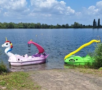Wer etwas mehr Action möchte kann sich ein Tretboot ausleihen, zwei Stück gibt es aktuell am See zu mieten, beide mit einer kleinen Rutsche, sodass der Spaß auf dem See nicht zu kurz kommt. Für 10,00 Euro pro halbe Stunde, kann man auch hiermit über den See fahren.