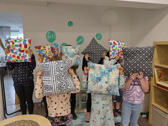 Schöne, selbstgenähte Kuschelkissen sind nun Erinnerungsstücke vom Nähkurs der FEG Alsheim.