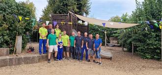 Pünktlich um 08.00 Uhr erschienen 13 Mitarbeiter mit Farbe, Pinsel und Holzteilen für die Ertüchtigung der Spielgeräte.