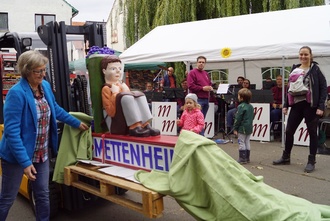 Der Mettenheimer Musikverein unterstützte die heitere Stimmung des Herbstfestes und mit einem großen Tusch, wurde das neue Mettenheimer Buttemännchen, dass aus Spenden der Mettenheimer Bürgerinnen und Bürger angeschafft worden war, enthüllt. Das alte Buttemännchen war nach 70 Jahren zum Restaurieren zu alt geworden.