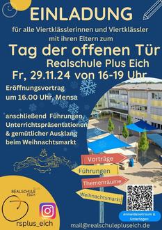 Wir freuen uns Sie und Ihre Kinder am Tag der offenen Tür (29. November 2024) der Realschule Plus Eich begrüßen zu dürfen.