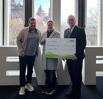 Die Spende setzt sich zur Hälfte aus den Beiträgen der EWR-Cent-Parade zusammen, einer Aktion, bei der rund 500 Mitarbeitende freiwillig die Nachkommastellen ihres Gehalts für den guten Zweck spenden. Der Vorstand der EWR AG rundete die gesammelte Summe anschließend großzügig auf.