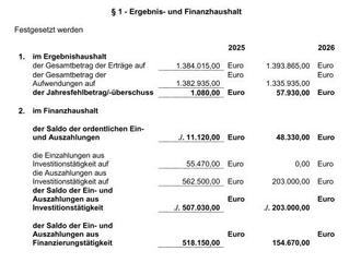 Beratung und Beschlussfassung über die Haushaltssatzung und über den Haushaltsplan 2025/2026