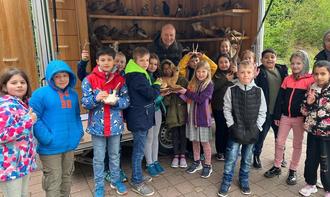 Der Naturschutzbeauftragte der Verbandsgemeinde Rhein-Nahe, Joachim Jacobs, stellte der Grundschule Petersackerhof das Umweltmobil vor. Für die Kinder bedeutet dies Natur zum Anfassen, denn die zahlreichen Tierpräparate von Hauswiesel über Fuchs bis zum Turmfalke faszinierten die Jugendlichen sehr.