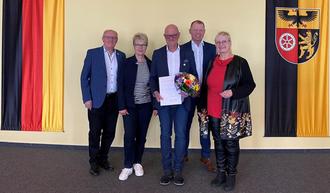 In der Ingelheimer Kreisverwaltung hat Landrätin Dorothea Schäfer im Namen der Ministerpräsidentin Malu Dreyer die Ehrennadel des Landes Rheinland-Pfalz an Wolfgang Chladeck aus Münster-Sarmsheim überreicht.