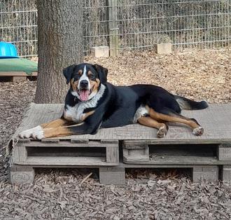 Sein Frauchen ist leider verstorben und so kam er als Abgabehund zu uns. Er beherrscht die Grundkommandos, läuft gut an der Leine und fährt Auto. Mit anderen Hunden ist er sozial verträglich.