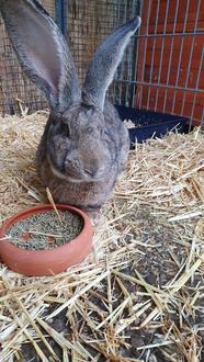Oskar und Ilda sind zwei Riesenkaninchen. Aktuell sitzen die Zwei noch getrennt von einander, da Oskar erst vor kurzen kastriert wurde. Beide sind im Februar 2023 geboren und nun fast ausgewachsen. Die Zwei möchten gerne zusammenbleiben und suchen nun ein Zuhause in Außenhaltung mit genügend Platz zum hoppeln.