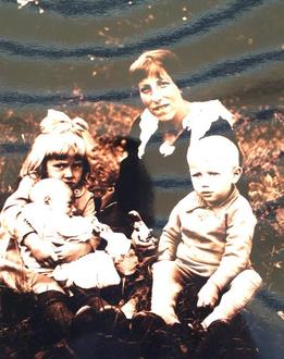 Charlotte Neidhöfer 1936 mit ihren Kindern in Henschhausen.