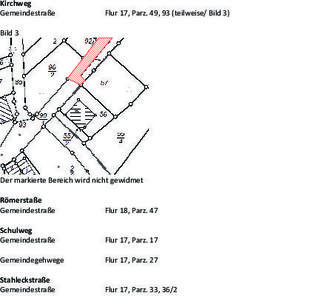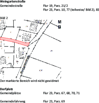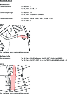 Gemäß §36 des Landesstraßengesetzes für Rheinland-Pfalz (LStrG) vom 01.08.1977 (GVBI. 1977 S. 273), in der derzeit geltenden Fassung, werden die nachstehenden Gemeinde -straßen, -wege und -plätze aufgrund des Beschlusses des Gemeinderates Bacharach vom 13.10.2022, wie folgt dem öffentlichen Verkehr gewidmet:
