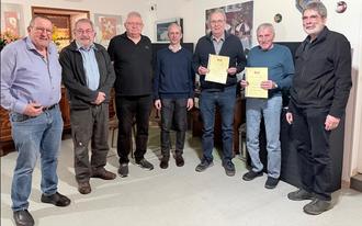 Anschließend wurden noch 2 Gründungsmitglieder für Ihre Verdienste um den Verein mit Urkunde und einer Gedenkmünze geehrt: