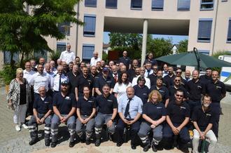 „Ich erlebe bei Ihnen eine ganz große Bereitschaft zu helfen“, sagte die Landrätin bei der Ehrung im Innenhof der Kreisverwaltung. Das gelte für die gesamte Blaulichtfamilie im Landkreis: „Sie leben den Zusammenhalt und sind Tag und Nacht bereit, sich in Gefahr zu begeben, um anderen Menschen zu helfen. Und dafür möchte ich Ihnen heute auch ganz persönlich meinen herzlichen Dank aussprechen.“ Besonders dankte Dorothea Schäfer den beiden stellvertretenden Brand- und Katastrophenschutzinspekteuren Michael März und Michael Braun für ihren ehrenamtlichen Einsatz in den vergangenen Jahren, der künftig verstärkt hauptamtlich unterstützt werden soll: Die Stelle des hauptamtlichen BKI wird in Kürze besetzt, ebenso die Stellen für die Alarm- und Einsatzplanung und den hauptamtlichen Gerätewart. Zudem soll neben dem BKI künftig auch die Stellvertretung hauptamtlich besetzt werden.