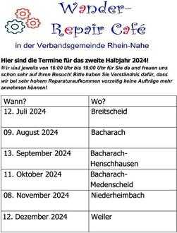 Leider hatte sich der Druckfehlerteufel eingeschlichen, hier nun die korrekten Termine des Wander-Repair Café.