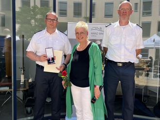 Erstmals verlieh die Landrätin dabei die neu geschaffene Katastrophenschutzmedaille an Männer und Frauen für ihre langjährige Tätigkeit und ihre außerordentlichen Verdienste: So gab es 3x Gold für mindestens 30-jährige Tätigkeit, 23x Silber für mindestens 20-jährige Tätigkeit und 29x Bronze für mindestens 10-jährige ehrenamtliche Tätigkeit.