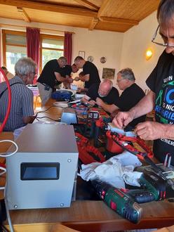 Trotz des warmen Wetters haben viele Bürger/innen aus nah und fern den Weg nach Medenscheid in das Bürgerhaus angetreten. Unsere „Schrottler“, Näherinnen und unser Nähmaschinenspezialist hatten alle Hände voll zu tun.