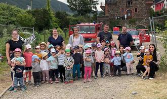 Am 06.06.2024 hat uns die Freiwillige Feuerwehr Trechtingshausen im Kindergarten besucht. Die beiden Feuerwehrmänner haben uns gezeigt, was ein Feuerwehrmann im Einsatz alles benötigt. Angefangen von speziellen Schuhen, über Hose, Jacke, Handschuhe bis hin zu einem Helm. Auch eine Taschenlampe, die an der Jacke befestigt wird und eine Stirnlampe, sind hilfreich im Einsatz.