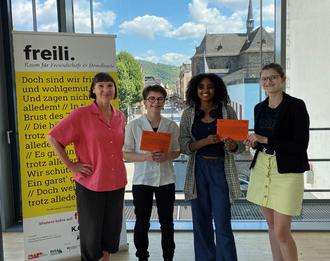 Am Sonntagmittag wurden die Einreichungen des Poesie-Wettbewerbs präsentiert und drei junge Damen konnten mit ihren Texten das Publikum überzeugen. Den ersten Platz erhielt Lisanne Jung mit ihrem politisch-historisch geprägten Text „Oh seht nur!“. Sara Shehim und Nathalie Persch teilten sich wohlverdient den zweiten Platz. Alle Einreichungen können unter https://freili.org/ angeschaut werden.