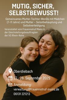 Am Wochenende vom 27. und 28.09.2025 bieten der Frauennotruf Mainz und die Gleichstellungsbeauftragte der VG Rhein-Nahe einen besonderen Kurs für Mütter und Töchter an. Unter dem Motto „Mutig, sicher, selbstbewusst!“ lernen sie, sich in Alltagssituationen gegen Belästigung und Gewalt zu verteidigen.