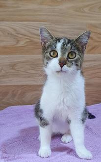 Die im August 2023 geborene Miri kam als Abgabekatze zu uns. Miri ist eine sehr freundlich junge Kätzin. Sie kam mit einen Kitten zu uns, das schon vermittelt ist.