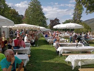 Nachdem sich am Freitag ein paar Regenwolken verzogen hatten, stand einem gemütlichen Sommerabend am Rhein nichts mehr im Wege. Gemeinsam besuchte der Stadtbürgermeister mit seinen Gästen die Wein- und Essensstände und man kostete so manchen Schluck aus den Weinkellern der Winzer und Leckereien aus den Töpfen der Köche. Genauso vielfältig wie das Angebot an den Ständen zeigte sich auch das Musikprogramm. Mit einer Mischung aus Rock, Pop, Country und Blues startete MEP-Live das Musikprogramm am Freitagabend. Schnell füllte sich die Tanzfläche und alle genossen den lauen Sommerabend bis in die späte Nacht. Mit der Ehemaligenband des Wilhelm-Hofmann-Gymnasiums St. Goarshausen, der Coming Up – Mittelrhein Jazz Academy e.V. startete der Samstagnachmittag. Die zahlreichen Besucher strömten wieder in den Park und genossen das sommerliche Wetter. Rege Betriebsamkeit herrschte an den Ständen, doch blieb auch genügend Zeit für ein kurzes Gespräch mit dem Winzer oder dem Koch. Der Abend stand dann ganz im Zeichen der „Night Stars“, die mit ihrer guten Laune und der peppigen Musik das Publikum auf die Tanzfläche zogen. Die Stimmung im Park war ausgelassen und fröhlich und gemeinsam wurde bis weit nach Mitternacht getanzt und gefeiert. Eine Premiere konnte am Sonntagmorgen gefeiert werden. Gemeinsam mit der evangelischen Kirchengemeinde Vierthäler und der katholischen Pfarreiengemeinschaft Bacharach luden die Standbetreiber zu einem ökumenischen Open-Air-Gottesdienst ein und zahlreiche Gäste folgten der Einladung. Anschließend setzte das Blasorchesters Oberes Mittelrheintal, kurz „BOOM“, mit einem musikalischen Frühschoppen den klangvollen Schlusspunkt.