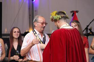 Anschließend wurde Simon Viehrig als neuer Bacchus der Stadt eingeführt, während Heiner Mades, der viele Jahre lang dieses Amt ausgeübt hatte, gebührend verabschiedet wurde. Als Zeichen der Anerkennung erhielten beide ein Weinpräsent.