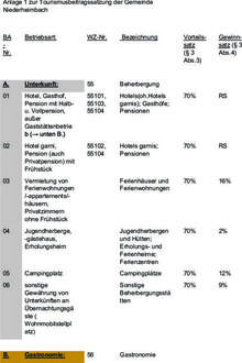 (3) Der Vorteilssatz bezeichnet für die einzelnen Arten der beitragspflichtigen Tätigkeit den auf dem Tourismus beruhenden Teil des Umsatzes.