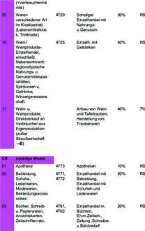 nach Lage des Betriebes und nach der Art der Tätigkeit für Betriebe mit unmittelbarem wirtschaftstlichen Vorteil
