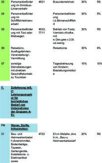 (2) Unter Umsatz i. S. d. Abs. 1 ist die Summe aller Entgelte (im Sinne des § 10 Abs. 1 des Umsatzsteuergesetzes) des dem Erhebungsjahr (§ 1 Abs. 3) vorvergangenen Jahres zu verstehen, die im Rahmen der beitragspflichtigen Tätigkeit gem. § 2 erzielt wurden. Für diejenigen, die nicht zur Umsatzsteuer herangezogen werden oder bei denen aus anderen Gründen ein Jahresumsatz nicht vorhanden ist, ist ein den Entgelten im Sinne des Satzes 1 entsprechender Einnahmebetrag maßgeblich. Im Erhebungsgebiet erzielt ist der Umsatz auch, soweit aus dem innerörtlichen Leistungsangebot resultierende Pflichten außerhalb des Erhebungsgebietes erfüllt werden. Abweichend von Satz 1 ist maßgebend: