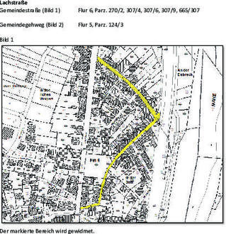 Gemäß §36 des Landesstraßengesetzes für Rheinland-Pfalz (LStrG) vom 01.08.1977 (GVBI. 1977 S. 273), in der derzeit geltenden Fassung, werden die nachstehenden Gemeindestraßen, -wege und – plätze aufgrund der Beschlüsse des Ortsgemeinderates Münster-Sarmsheim vom 13.09.2022, wie folgt dem öffentlichen Verkehr gewidmet: