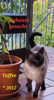 Toffee, unsere Siamdame, ist ca. 2011 geboren. Sie kam als Abgabekatze und sucht nun ein neues Zuhause. Sie ist aktuell noch etwas zurückhaltend. Toffee war es gewohnt im Garten herum zu streifen und sucht deshalb ein ruhiges Zuhause mit späteren Freigang.
