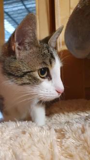 Miro ist einfach ein Schatz. Der weiß-graugetigerte ca. 6 Monate alter Kater ist, wie er sein sollte ein junger Kater der alles entdecken will.