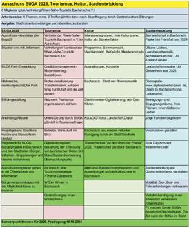 Die Ausschussmitglieder geben Auskunft über ihre Interessensgebiete, ihre Ideen und Motive in den unterschiedlichen Themenbereichen des Ausschusses. Auf starkes Interesse stoßen die Überlegungen bzgl. der BUGA 2029 sowie der touristischen Entwicklung und generellen Belebung der Stadt Bacharach.