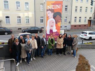 Die Fahne „Frei Leben - ohne Gewalt“ weht bereits seit Jahren an diesem Gedenktag am Rathaus der Verbandsgemeinde. Auch in diesem Jahr wurde die Fahne durch die Gleichstellungsbeauftragte der Verbandsgemeinde Daisy Liebau-Plath und der stellvertretenden Gleichstellungsbeauftragte der Verwaltung Silke Stenzhorn sowie Mitarbeiterinnen und Mitarbeitern der Verbandsgemeindeverwaltung und Bürgermeister Benedikt Seemann am Rathaus gehisst.