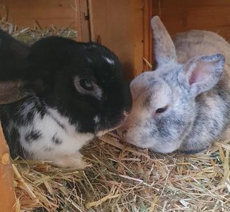 Der beige Barney und der schwarzweiße Harry und der blaugraue Stevie verstehen sich gut. Stevie, das blaugraue Widderkaninchen ist blind, kommt damit aber gut klar. Unser Dreiergespann möchte gerne zusammenbleiben und suchen nun ein Zuhause in Aussenhaltung mit genügend Platz zum hoppeln.