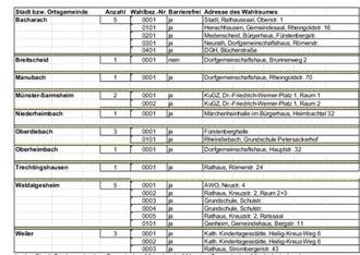 In der Stadt Bacharach, den Gemeinden Manubach, Münster-Sarmsheim, Niederheimbach, Oberdiebach, Oberheimbach, Trechtingshausen, Waldalgesheim und Weiler sind alle Wahlräume der Wahlbezirke barrierefrei eingerichtet.