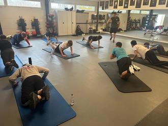 Im Anschluss an den Spinningkurs wurde von Marcel im Kursraum eine Tabata-Einheit vorbereitet. Dabei sollten die Schülerinnen und Schüler verschiedene Übungen auf einer Trainingsmatte in zeitlich begrenzten Intervallen und spezieller Musik absolvieren. Auch hierbei haben sich unsere Schülerinnen und Schüler nicht unterkriegen lassen und trotz völliger Erschöpfung die geforderten Übungen mit letzter Kraft durchgezogen.