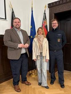 Zu einem ersten gemeinsamen konstruktiven Austausch trafen sich Polizeidirektorin Corinna Koch, Leiterin der Polizeidirektion Worms sowie Polizeihauptkommissar Carsten Schuler, Leiter der Polizeiwache Wörrstadt mit dem neuen Bürgermeister der Verbandsgemeinde Wöllstein, Johannes Brüchert.