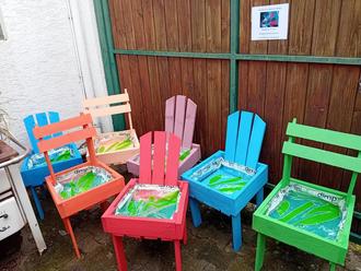 An zwei Arbeitseinsätzen konnten 24 Stühle gefertigt werden. Die Pflanzstühle stehen im Sammelsurium bei Karen Klein oder Mittwochs auf dem Wochenmarkt zum Verkauf.