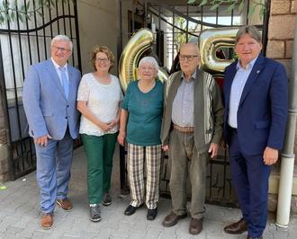 Das Ehepaar Lieselotte und Heinrich Wagner aus Siefersheim konnte dieser Tage das seltene Fest der Eisernen Hochzeit feiern. Neben dem großen Kreis an Familienangehörigen, Verwandten und Freunden überbrachten auch die Vertreter des öffentlichen Lebens die herzlichsten Grüße und Glückwünsche. Für den Landkreis Alzey-Worms gratulierte Landrat Heiko Sippel, für die Verbandsgemeinde Wöllstein Bürgermeister Gerd Rocker und für die Ortsgemeinde Siefersheim Bürgermeisterin Frau Annerose Kinder. Im Rahmen eines kleinen herzlichen Empfanges und eines Umtrunkes tauschte man sich über die bisherigen Begegnungen und Erinnerungen zur Vergangenheit aus. Für den weiteren Lebensweg wünschen wir dem Ehepaar Wagner noch viele schöne, glückliche gemeinsame Jahre in Zufriedenheit und bei Gesundheit.