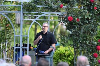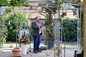 Musikalisch wurde die Veranstaltung durch den Beitrag des Gitarristen Thomas Lang von der Musikschule TamTam eingerahmt, was die sommerliche Atmosphäre im Rosengarten abrundete.