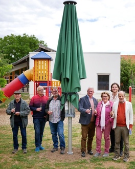 Am Freitag, den 23. Mai, konnten in der Kindertagesstätte der Ortsgemeinde Siefersheim zwei neue Sonnenschirme mit einer Größe von jeweils 4 x 4 Metern offiziell eingeweiht werden. Die Schirme bieten den Kindern künftig willkommenen Schatten an heißen Tagen und leisten einen wichtigen Beitrag zur Klimawandelanpassung und zur Aufenthaltsqualität im Außenbereich der Einrichtung.