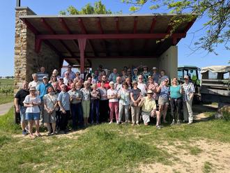 Der Samstag wurde durch die Gäste und Gastgeber zur eigenen Gestaltung genutzt, ehe am Sonntag der gemeinsame Ausflug in die „heimliche Hauptstadt Rheinhessens“ nach Alzey anstand. Nach einer kurzweiligen Stadtführung und einem Empfang im Weingut der Stadt Alzey bestieg die deutsch-englische Ausflugsgruppe die bereitgestellten Anhänger zur Weinbergsrundfahrt rund um Alzey. Bei herrlichstem Sonnenschein, kühlen Weinen und dem obligatorischen Snack mit Weck und Worscht konnte die schöne rheinhessische Landschaft und die gute Gemeinschaft genossen werden. Nach einem gemeinsamen Abschluss in der Museumsschänke in Alzey-Schafhausen kamen alle Freunde der Partnerschaft begeistert vom gemeinsamen Ausflug zurück.