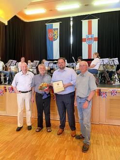 Am Montagvormittag wurde mit Blasmusik der Welzbachklänge aus Nieder-Hilbersheim der offizielle Empfang in Form eines rheinhessischen Frühschoppens eröffnet. Nach den Reden von Chairman John Vincent und Ortsbürgermeister Johannes Brüchert zum offiziellen 45-jährigen Bestehen der Partnerschaft gab es noch eine besondere Ehrung. Denn bereits vor genau 50 Jahren machte sich der erste Bus mit Wöllsteinern auf den Weg nach Great Barford zu einem gemeinsamen Fußballspiel. Als Mann der ersten Stunde und langjähriger Aktiver der Freundschaft wurde Werner Gehl aus Wöllstein mit dem Wappenteller der Ortsgemeinde für das besondere Engagement für die Partnerschaft geehrt. Nach dem offiziellen Teil gab es dann ein deftiges Mittagessen, zur Unterhaltung noch Tänze der Tanzgruppen Jellylorum und Lucky Stars und einen gemütlichen Ausklang bei Kaffee und Kuchen.