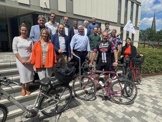 Am 13. Juni 2024 trafen sich die Klimaschutzmanager und Bürgermeister der Verbandsgemeinden des Landkreises Alzey-Worms, gemeinsam mit dem Landrat Heiko Sippel und anderen lokalen Vertretern wie dem Stadtradeln-Star Jürgen Diehl (VG Eich) in Alzey, um das diesjährige Stadtradeln einzuläuten. Auch Bürgermeister Gerd Rocker und Klimaschutzmanager Pascal Zehmer waren selbstverständlich zugegen. Landrat Heiko Sippel hob in seiner Eröffnungsrede hervor, dass im Rahmen der letztjährigen Stadtradeln-Kampagne im Landkreis Alzey-Worms über 200 000 Kilometer zurückgelegt wurden und dadurch 37 Tonnen CO2 eingespart wurden.