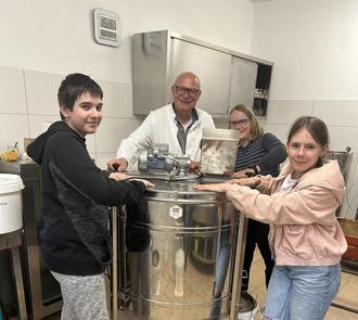 Die „geernteten“ 25 kg Honig werden im September abgefüllt und wir bekommen ca. 100 Gläser „Realschule-plus-Honig-2024“ von Herrn Vogel zurück. Wir haben die Produktion vom Anfang bis zum Ende aktiv begleitet. Der Honig wird auch sicher wieder – wie auch in den vergangenen Jahren - zum Verkaufsschlager am "Tag der offenen Tür" und auf dem Wöllsteiner Weihnachtsmarkt.