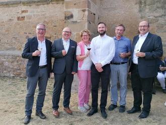 Ortsbürgermeisterin Annerose Kinder (Siefersheim) sowie die Ortsbürgermeister Jochen Emrich (Wonsheim), Thorsten Jahn (Stein-Bockenheim) und Rainer Mann (Eckelsheim) gratulierten zusammen mit dem Beigeordneten der Verbandsgemeinde, Herrn Oliver Heckmann.