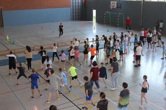 Die Stimmung war am Kochen. Lautstark feuerten sich die 4. Klassen der Grundschule Wöllstein und die 5. Klassen der Realschule plus Wöllstein beim diesjährigen Quietschie-Turnier in der Turnhalle der Realschule plus gegenseitig an.