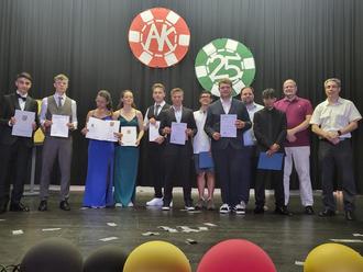 Die Abendveranstaltung endete mit der Zeugnisausgabe an die 55 Abgänger (11 mit Berufsreife und 42 mit Sek I, davon 30 mit Oberstufenempfehlung, 13 beginnen eine Ausbildung) durch die Klassenleitungen Jasmin Becker (9a), Tobias Röhlich (9b), Alexandra Decker-Jack (9c), Christof Deubel (10a) und Christian Haus (10b).