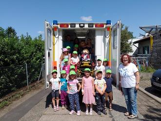 Ein besonderes Highlight war der Besuch eines echten Rettungswagens. Die Kinder durften diesen ganz genau erkunden und dabei spannende Einblicke in die Ausrüstung und die Arbeit der Rettungskräfte gewinnen.