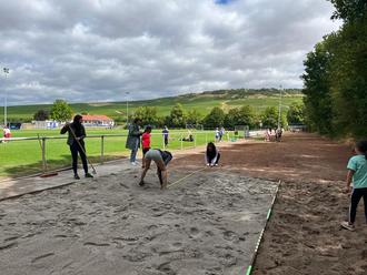 Bedanken möchten wir uns an dieser Stelle auch bei den „Grauen“, die den Sportplatz, und vor allem die Sprunggrube, so toll für uns hergerichtet haben, damit wir unsere Bundesjugendspiele dort stattfinden lassen können. Dankeschön auch an die Ortsgemeinde und den TSG, dass wir den Sportplatz nutzen durften.